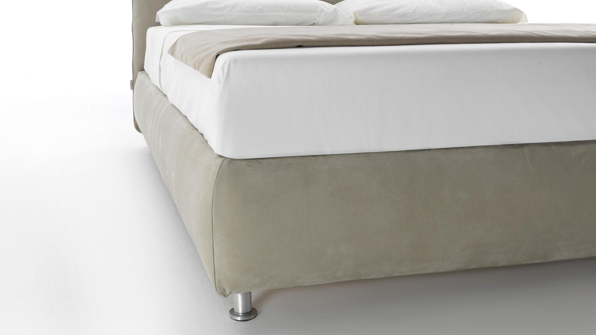 Il telaio è in multistrato di legno con rete ortopedica a doghe di faggio piegate al vapore; le imbottiture sono in waterfoam a quote differenziate completamente anallergico e con trattamento antiacaro.